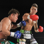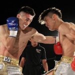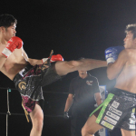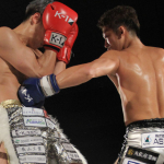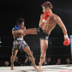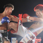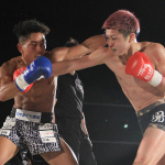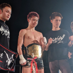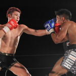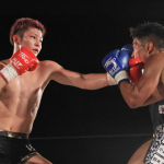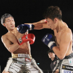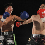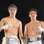 緊張感あるエキシビションマッチを披露した安保(左)と野杁(右)