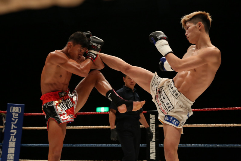 天才・安本(右)が鮮烈な1RKOでプレムを撃破しWPMF世界のベルトを奪取した