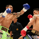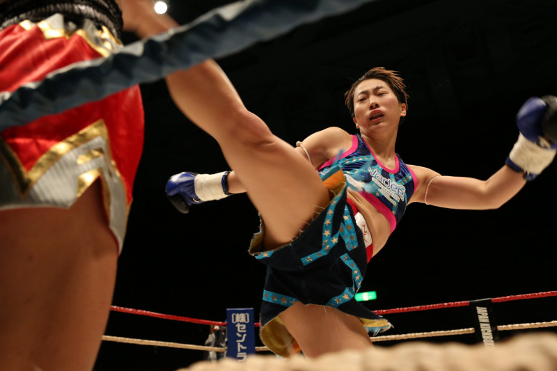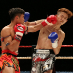 渾身の打撃が乱れ飛ぶ乱戦を制し、小林が世界のベルトを奪取