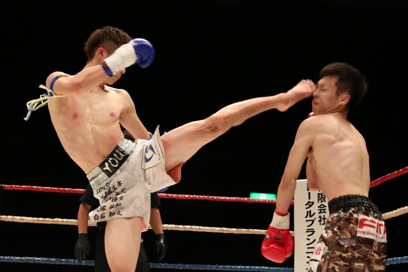 地元の平松(左)がヒジでカット奪いTKO勝利