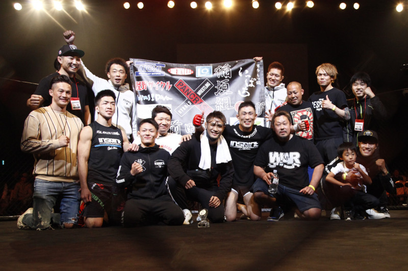 12年ぶりのパンクラスで1R一本勝ちを収めた前田(前列右から4番目)