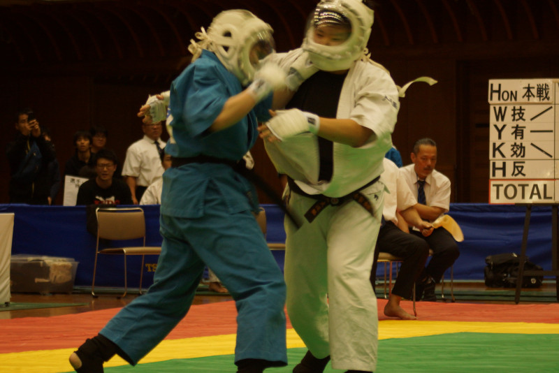 果敢に打ち合いに挑む大倉(青)