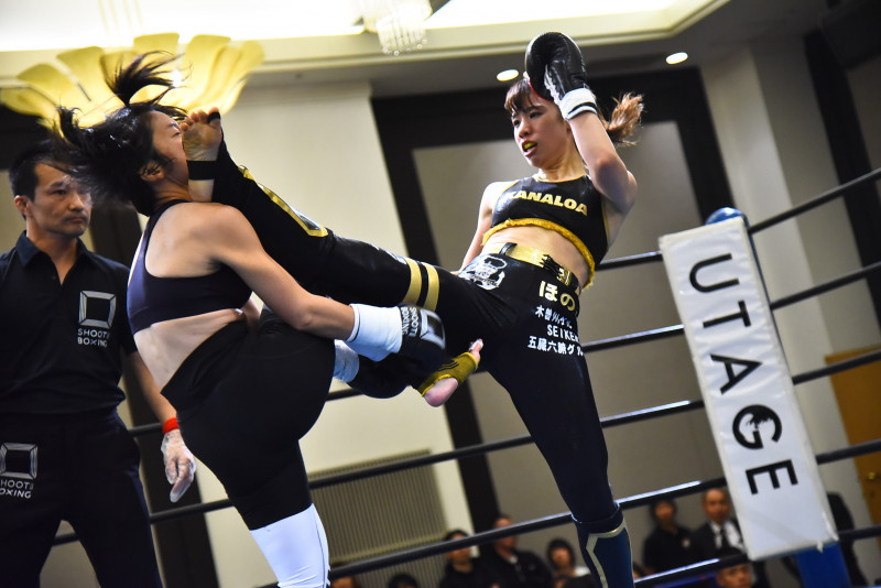 ほのか(右)は、この試合でヤングシーザー杯MVPに輝いた(C)SHOOT BOXING