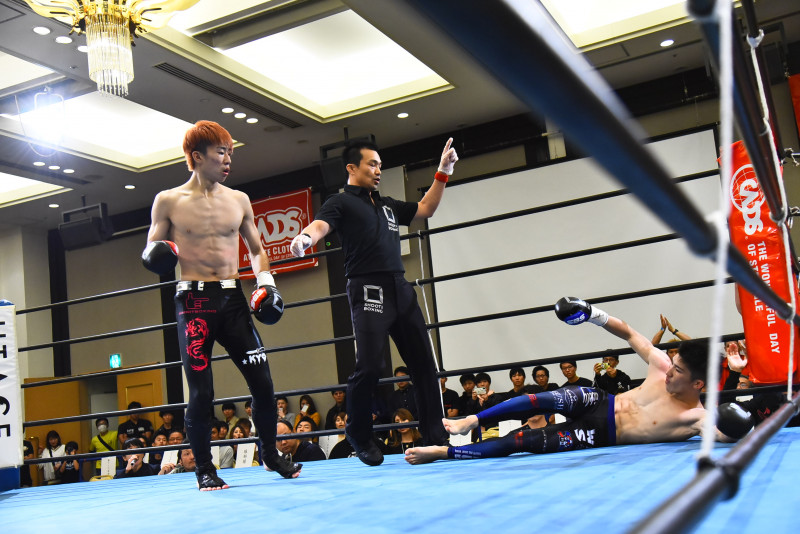 川上の左ストレートで佐藤がダウン(C)SHOOT BOXING