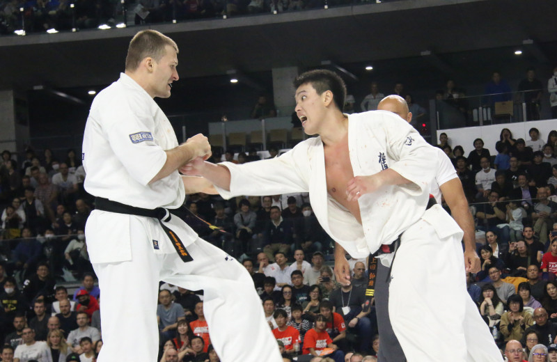 上田幹雄(右)がロシア王者のイエロメンコに延長2回、果敢に打ち合い優勝をもぎ取った