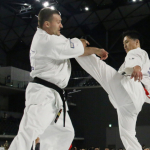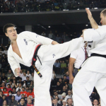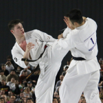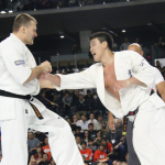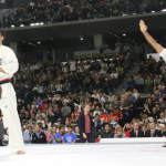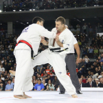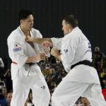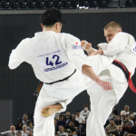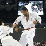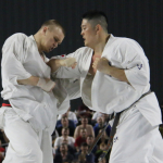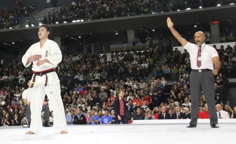 上田幹雄の優勝が決まった瞬間。主審はフランシスコ・フィリォ