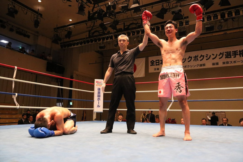個人戦、ライト級チャンピオントーナメント決勝戦は日本大学2年の大館秀長(右)に軍配。負けた一ノ瀬は泣き崩れる