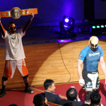 一本をとったミノワマンは所が三角締めに行こうとするところを何度も持ち上げて時間稼ぎ