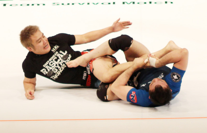 膝関節からの足首グリグリ捻りで「イテッ!」と声を上げタップする五味