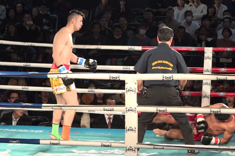 UMAはトリッキーでスピードのある攻撃で喜入を翻弄、ヒジでダウンを奪う