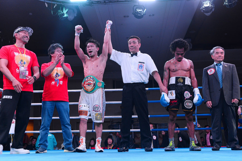 勝利に歓喜する田村(左から3番目)とそれを祝福する森川氏(左から2番目)