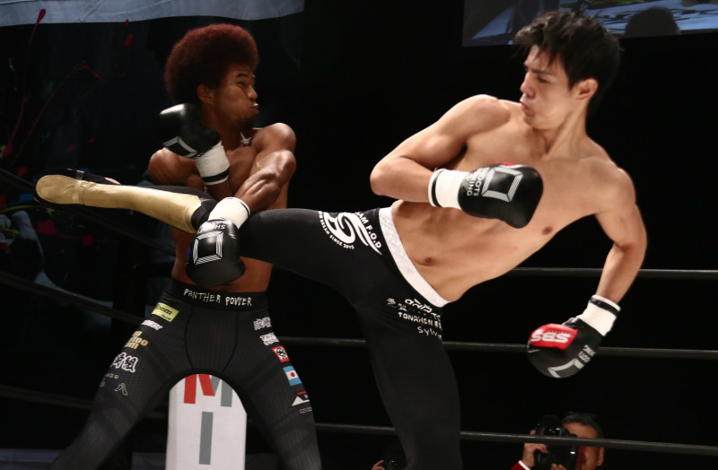 海人が後ろ蹴りを放つ