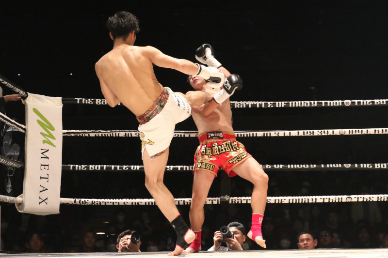 梅沢の右ハイキック一閃、リクからダウンを奪う
