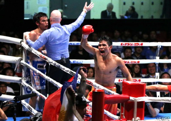 17年4月の大森将平にKO勝利したタパレス。前日計量超過のため王座剥奪され勝っても戻らなかった