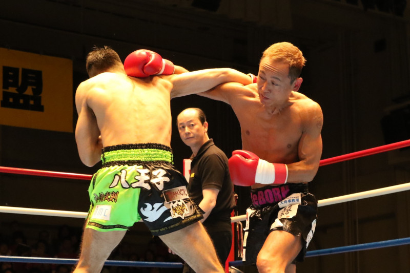 前進を止めないテープジュン(右)は手数を緩めず村田を苦しめた
