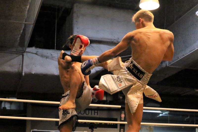 躍動感のある蹴りで皆川から2ダウンを奪取、基山が5勝目にして初のKO勝利を収めた
