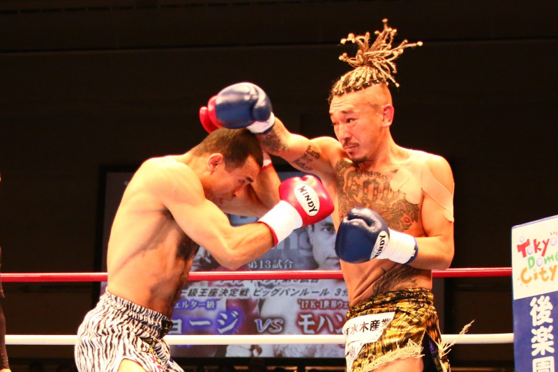 ジョージはモハンの強打に退かず真っ向勝負、大ぶりのモハンのパンチの内側からストレートを打ち抜く