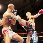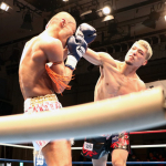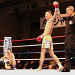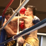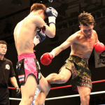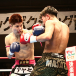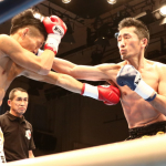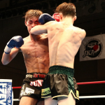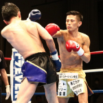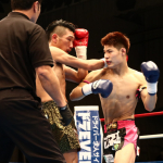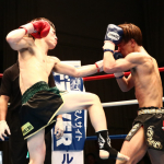 組んでのヒジ・ヒザに勝負をかけた石川(右)