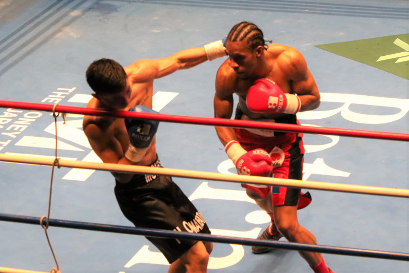 デスティノはパワフルなパンチでトゴルドルにプレッシャーをかけるが、トゴルドルは足を使いアウトボクシング
