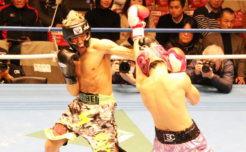 復帰戦が中止となった土屋修平(左)が三冠王者吉野とスパーリング