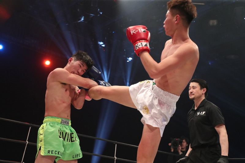 延長戦で大関を下した古宮(左)だったが疲労の色は濃く、中堅・齋藤の連打に屈した(C)AbemaTV