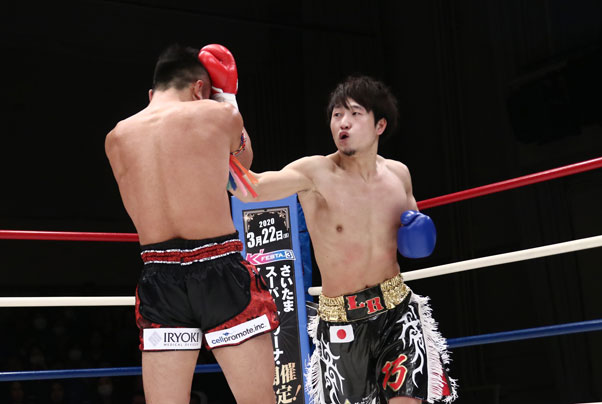 右のパンチを振るう横山(右)