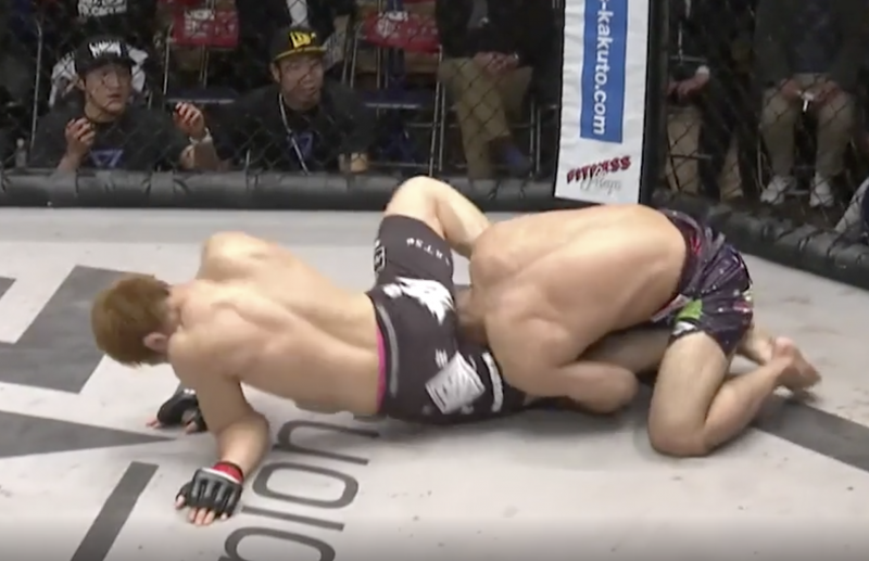 左手をついた瞬間に、肘が反対方向に曲がり脱臼した瞬間(c)AbemaTV