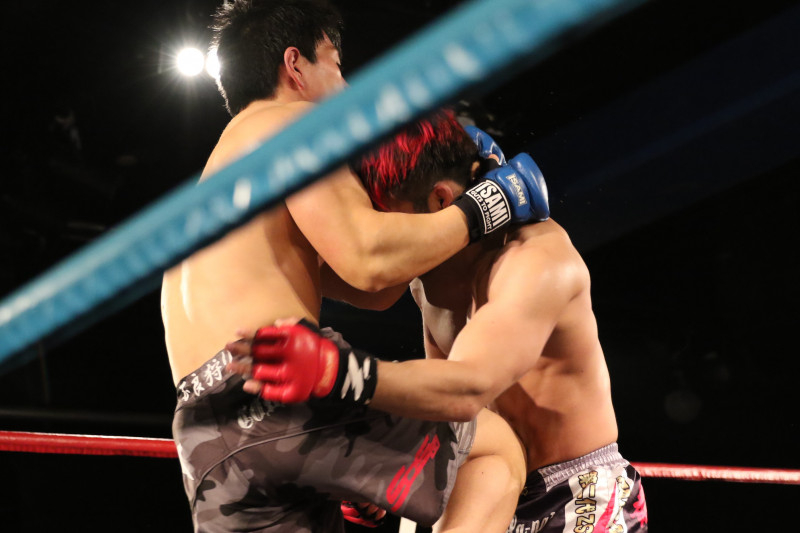 佐野は首相撲からのヒザ蹴りを中心に組み立てたが、平のアッパーを呼び込んでしまった