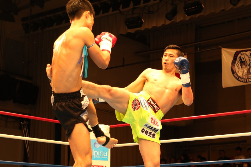デッパノムは元ムエタイ王者らしく左右のミドルを中心に重森に肉薄していく