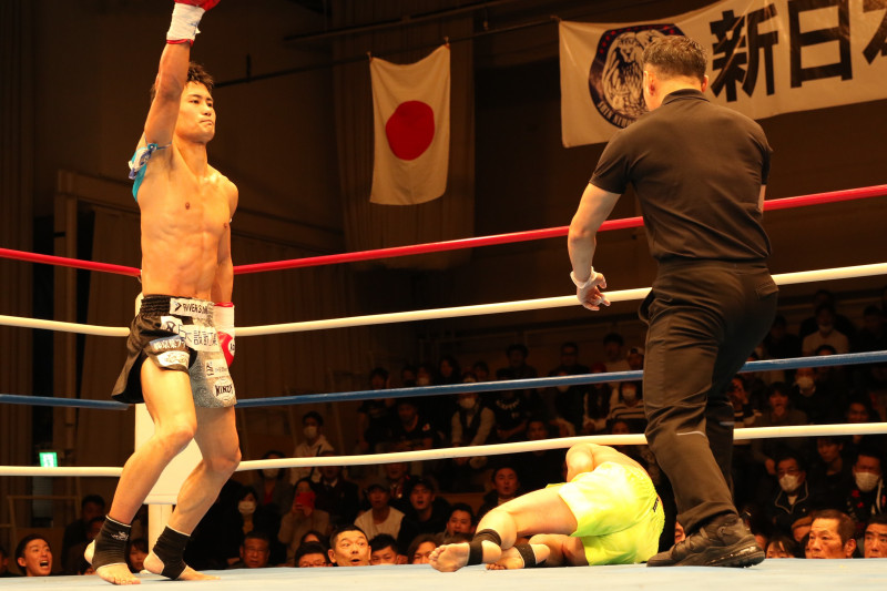 静かな展開が続く中、突如訪れた左ボディ一撃KOシーン、重森が成長の証を見せた瞬間