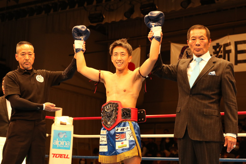 新設されたWKBAジャパンのベルトを巻いた日畑「また戻ってきます」と継続参戦の意向を示した