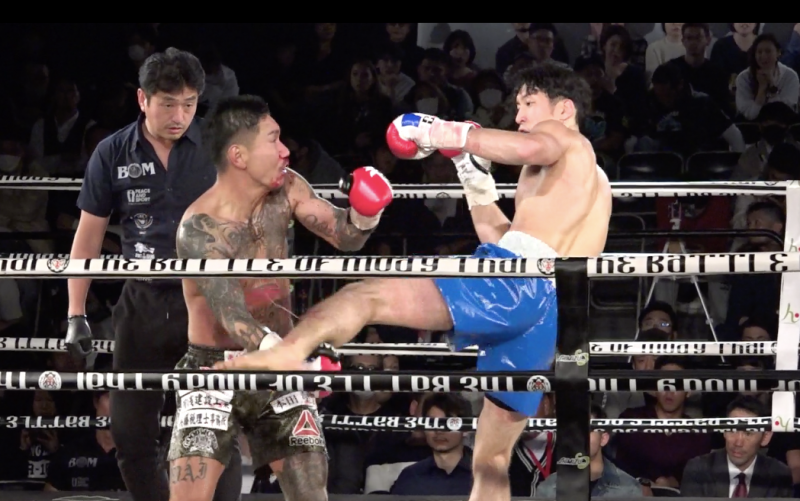 このJ(右)の 左ハイキックが炸裂した