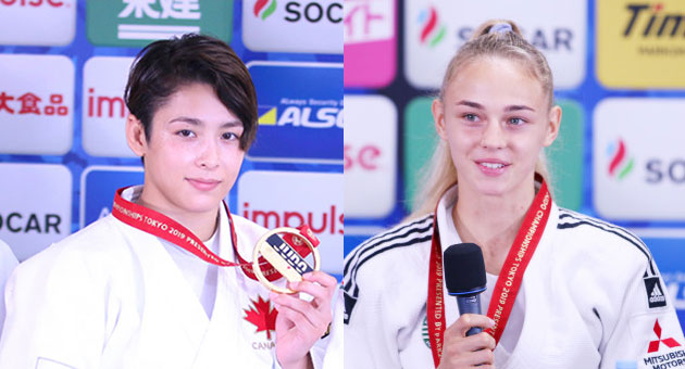 48kg級でビロディド(右)、57kg級で出口(左)が優勝した