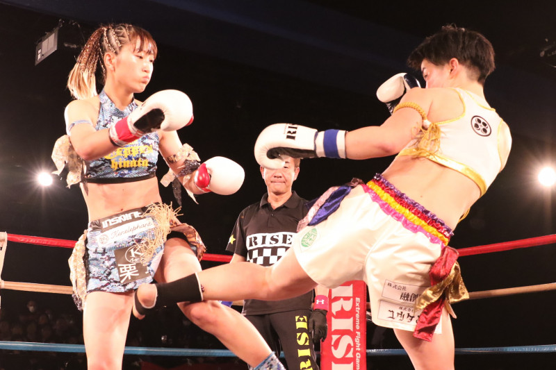 KOKOZはムエタイベースらしい強いローキックで寺山に迫る