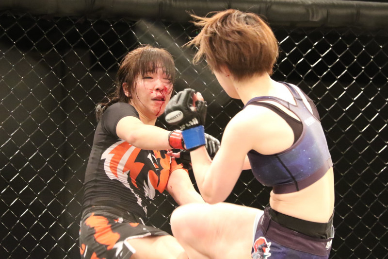 中村の打撃で梅原は鼻から出血