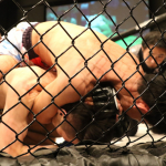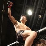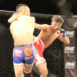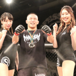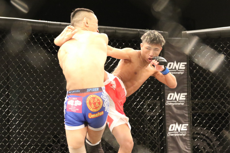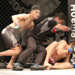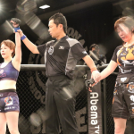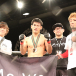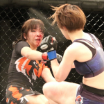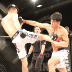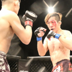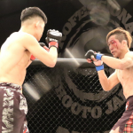 楳沢のタックルに押されるかに見えた田上が後半打撃で逆転、KO勝利を収める