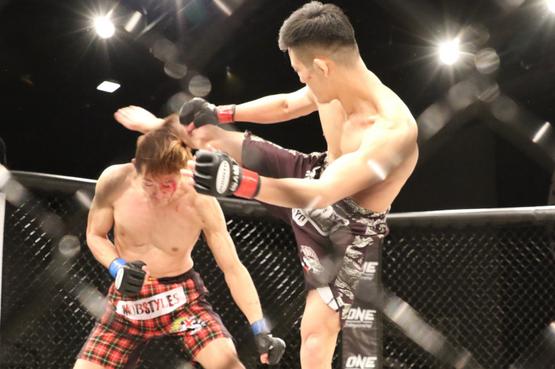 青井はパンチ、キックとバリエーションのある攻撃を見せ久保村を圧倒した