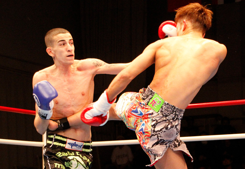 前田の蹴りにロベルトがパンチで応戦
