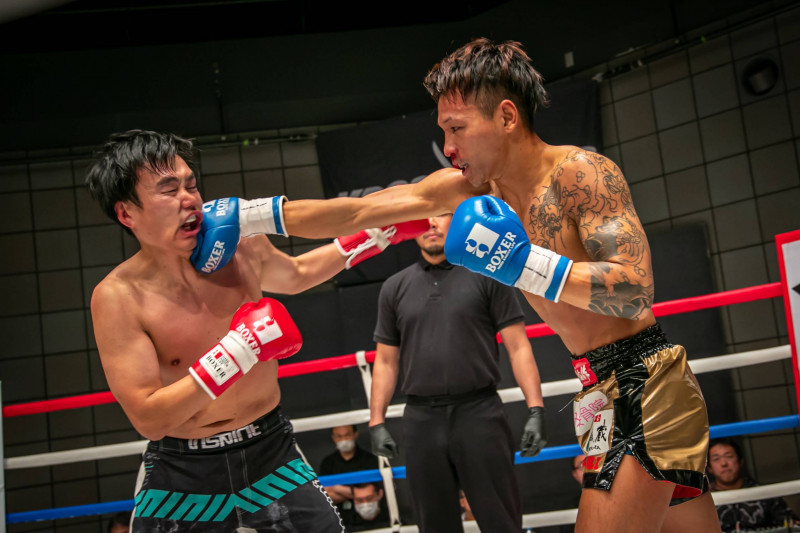 石月(右)が逆転TKO勝利し、次期-60kg王座挑戦者となった