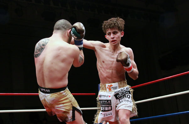強烈な拳を振るっていく鈴木(右)、初防衛に成功した