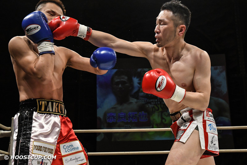 元王者の一刀(右)がTKO勝利でフェザー級王座の次期挑戦者に決定