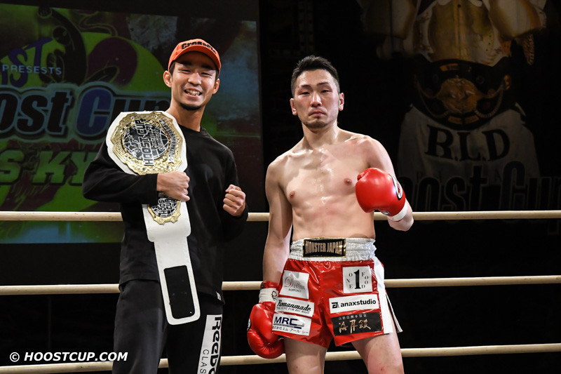 勝利した一刀と、6月大会で対決する現王者・上杉(左)