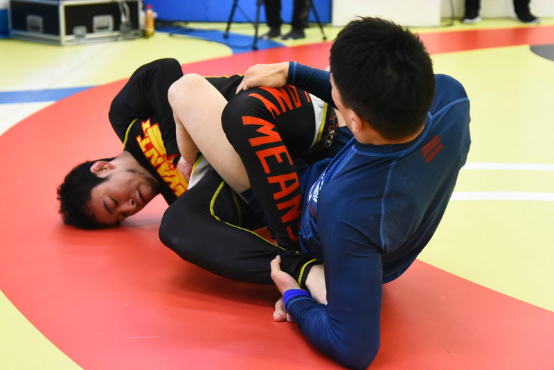 ヒールホールドで一本勝ちした寒河江(左)
