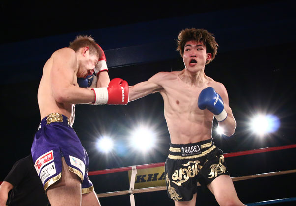 パンチを振るっていく永井(右)