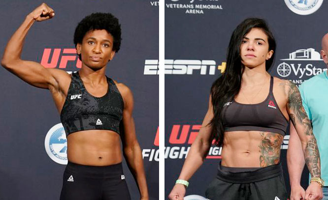 前日計量でのガデーリャ(右)とヒル(Getty/Zuffa LLC/UFC)