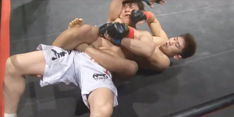 グラウンドでパンチを連打する清水