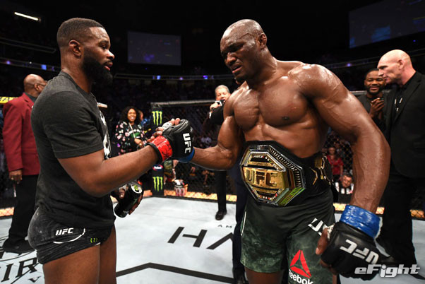19年3月、王者ウッドリー(左)を破りアフリカ人初のUFC王座に就いたウスマン(右)