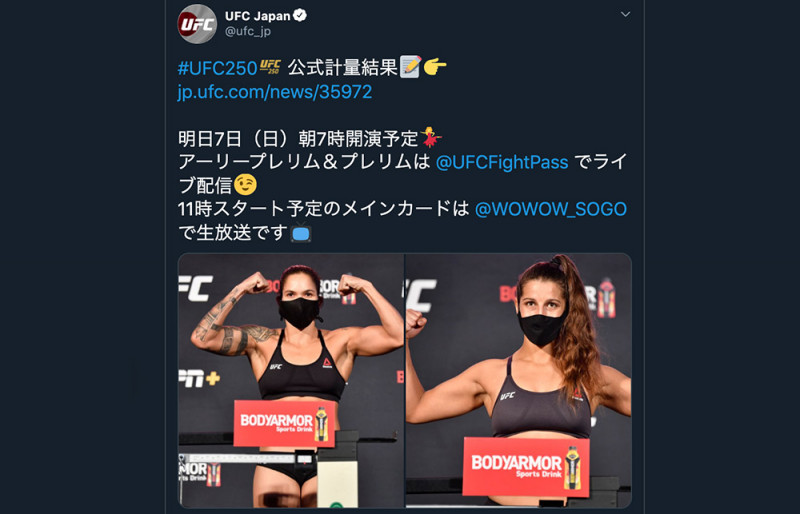 計量パスしマッスルポーズのヌネス(左)とスペンサー(右)(@ufc_jpより)