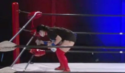 試合と試合の間には、スタッフがコーナーやロープの消毒を行った