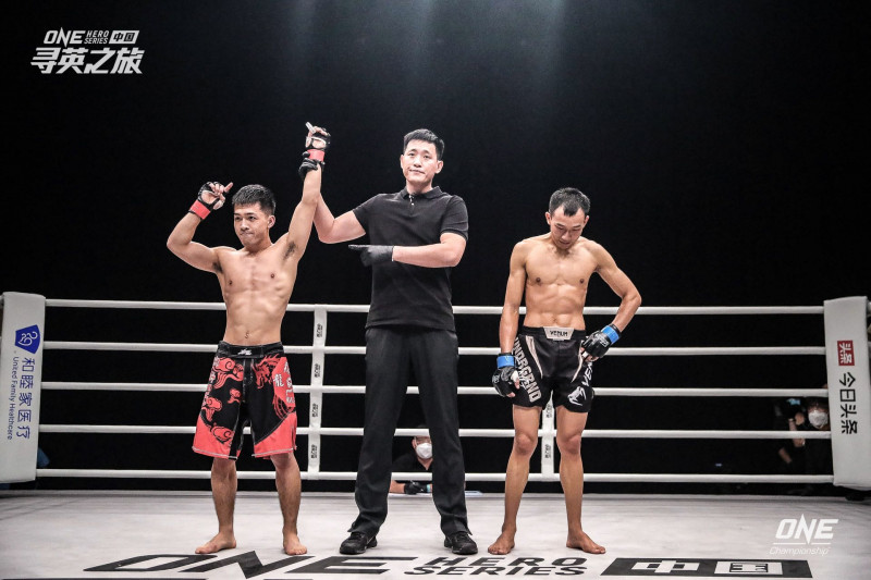 ONEが3ヶ月半ぶりに上海で試合(無観客)を行なった。ONEが3ヶ月半ぶりに上海で試合(無観客)を行なった。左はチョークで一本勝ちしたリー・ジゥー